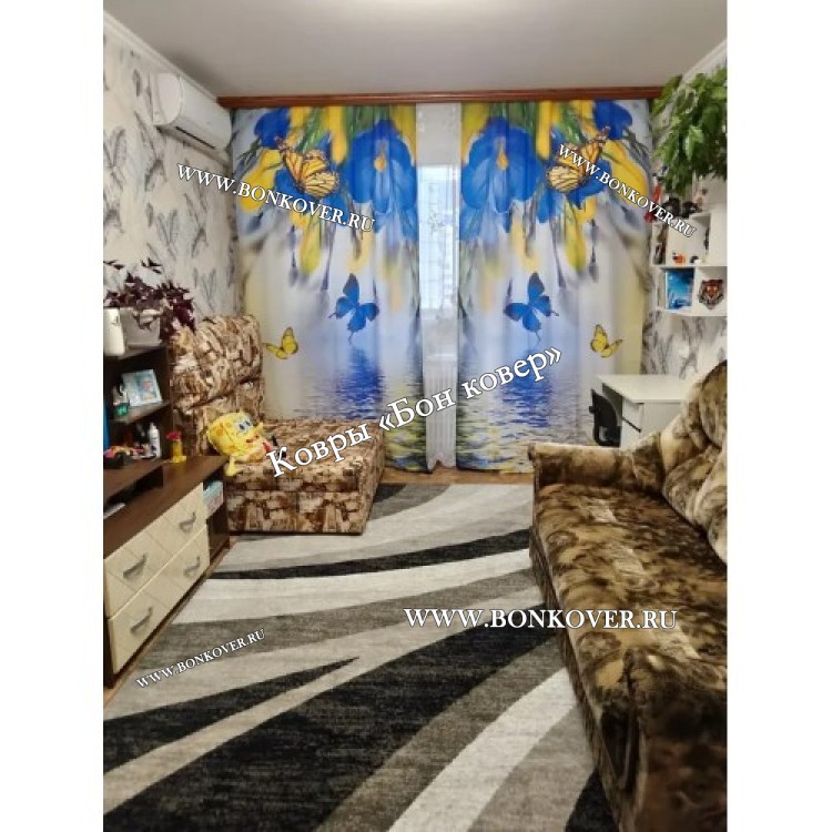 Изящный Ковер в гостиную дизайн 29664 наполняет интерьер гостиной теплом и уютом, гармонично сочетает в себе изящество и стиль. Он соткан из высококачественного сырья, прочный и долговечный.