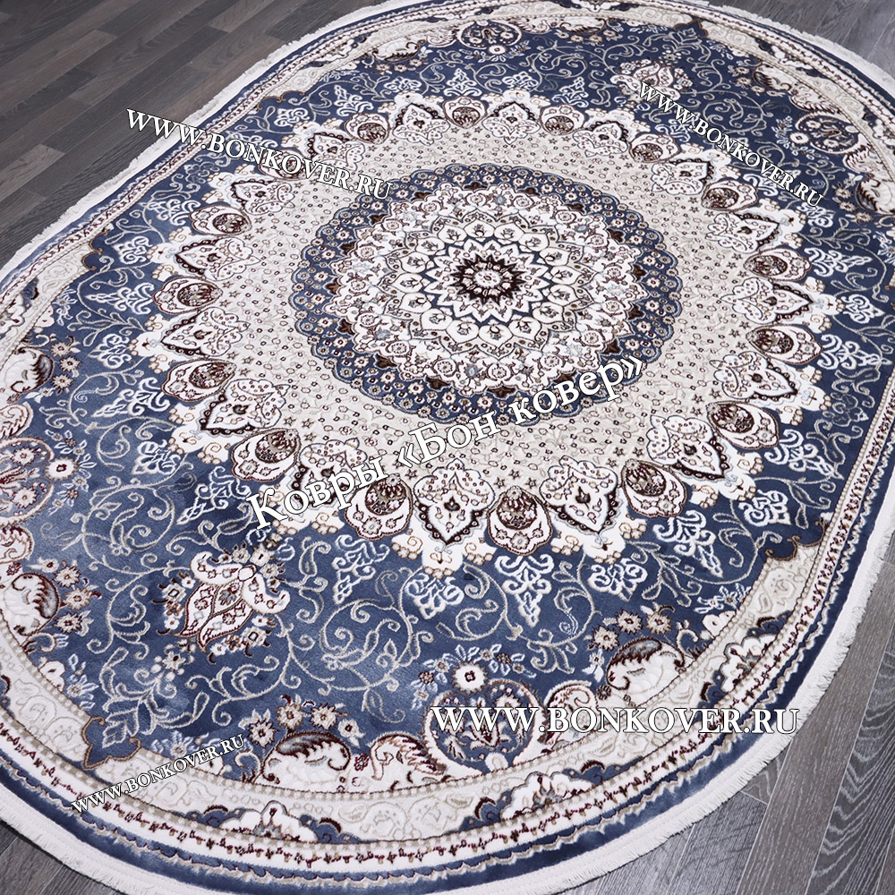 Турецкий Ковер Медальон дизайн 87 Синий Овал станет великолепным преображением жилого помещения, подчеркивая высокий статус хозяина.